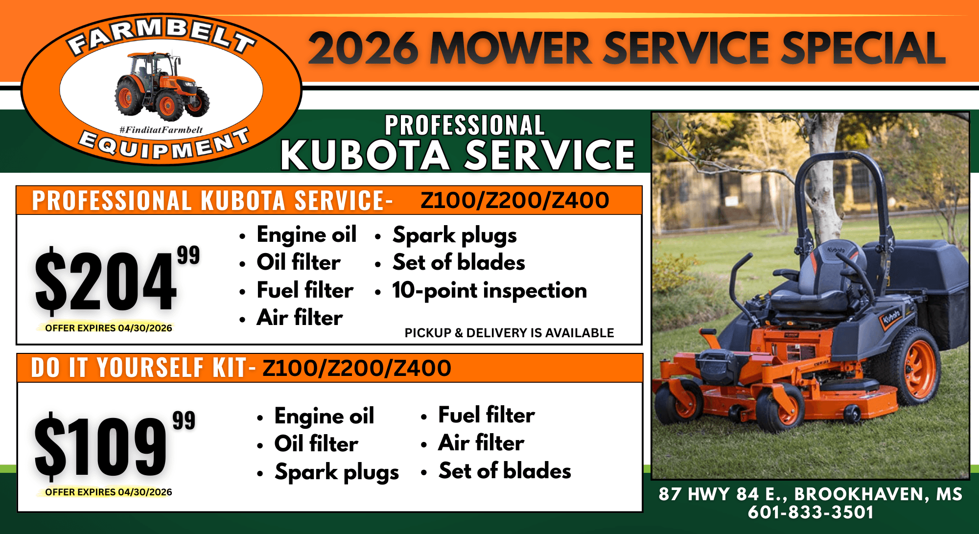 2026 Mower Service Special – Z100/Z200/Z400